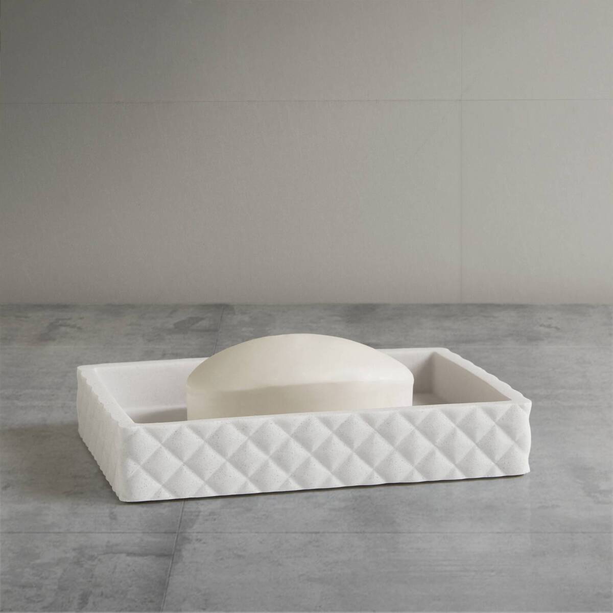 Our Nomad Home® Resin collection features a diamond embossed texture that enhances any guest bath setting. Each piece is treated with Fuze® antimicrobial, a permanent and all-natural antimicrobial to resist mold and mildew. Available in two colors; Onyx and Cloud White.
